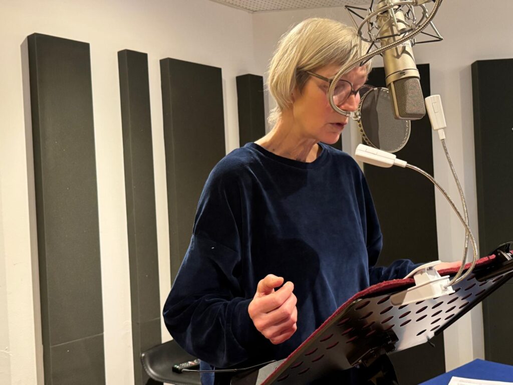 Hier sehen Sie mich im Studio bei der Vertonung eines Hörbuchs.